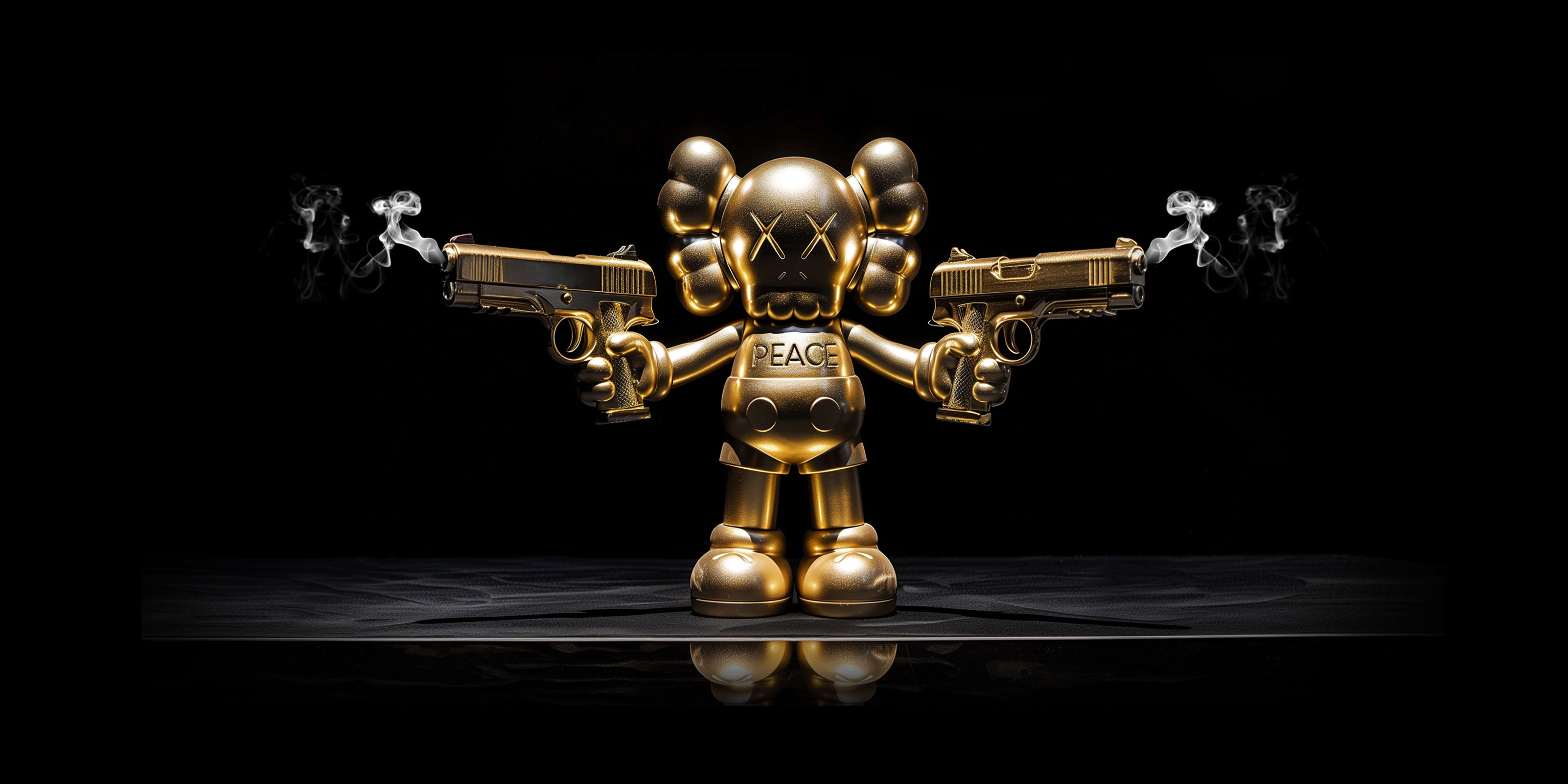 Elmetti Oro, Granate Fuxia, Pistole Blu, Anfibi Viola, rivisitate in chiave ironica e fashion ci fanno riflettere su un messaggio potente: La Pace è il vero lusso!